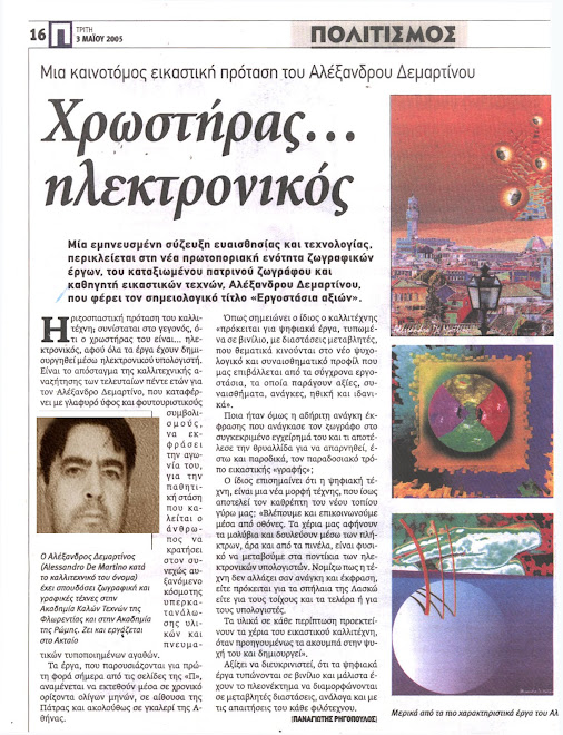 Όπως αναφέρει ο Καθηγητής Καλών Τεχνών Φλωρεντίας , RENATO ALBERTI, για τον Alessandro De Martino: «….Τα πρόσωπα του και οι απότομες, κοφτές, χρωματικές φόρμες, θυμίζουν τις μελαγχολικές φιγούρες του Κίρχνερ με έναν ρομαντισμό ξεχειλισμένο από συναισθήματα.....» ενώ η ιστορικός Τέχνης Αριστοτελείου Πανεπιστημίου Θεσσαλονίκης, ΚΟΥΤΣΗ ΛΑΜΠΡΙΝΗ επισημαίνει ότι : «……ολόκληρη η ζωγραφική δημιουργία του θεμελιώνεται πάνω στην πεποίθηση ότι η τέχνη με τα αισιόδοξα οράματα της αποτελεί την μόνη ικανοποιητική απάντηση στις υπαρξιακές αγωνίες του σύγχρονου ανθρώπου….» τέλος, στην εφημερίδα «Πελοπόννησος» ο ΠΑΝΑΓΙΩΤΗΣ ΡΗΓΟΠΟΥΛΟΣ, με αφορμή την έκθεση, «Εργοστάσιο αξιών» γράφει: «….καταφέρνει με γλαφυρό ύφος και φουτουριστικούς συμβολισμούς, να εκφράσει την αγωνία του, για την παθητική στάση που καλείται ο άνθρωπος να κρατήσει στον συνεχώς αυξανόμενο κόσμο της υπερκατανάλωσης υλικών και πνευματικών τυποποιημένων αγαθών …». Θα μπορούσαμε να πούμε ότι ο σκοπός της ζωγραφικής του είναι να εκφράσει τα ανθρώπινα συναισθήματα, που αποτελούν το βασικό συστατικό του προσδιορισμού της πραγματικότητας.
